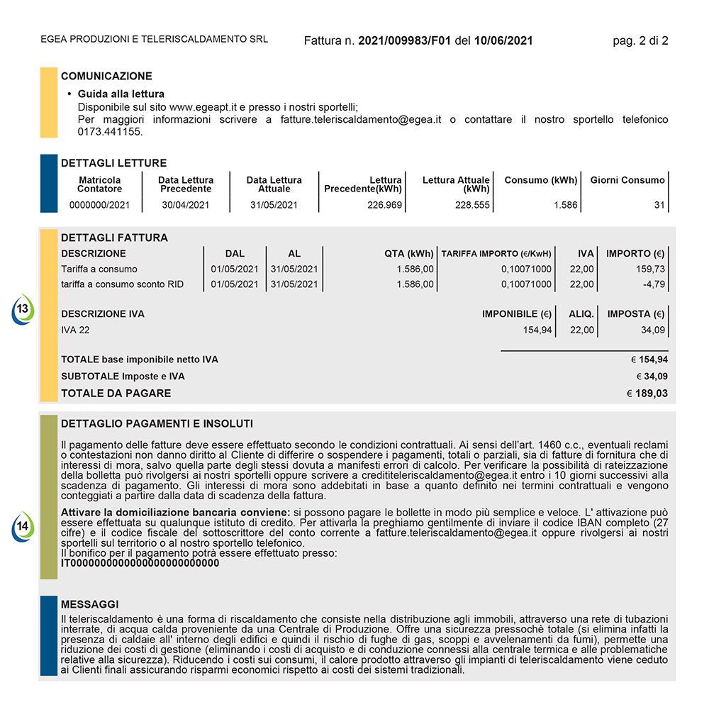 - COMUNICAZIONI SUI PAGAMENTI: riporta informazioni utili su pagamenti e insoluti e contatti per attivare la domiciliazione o la rateizzazione delle bollette.